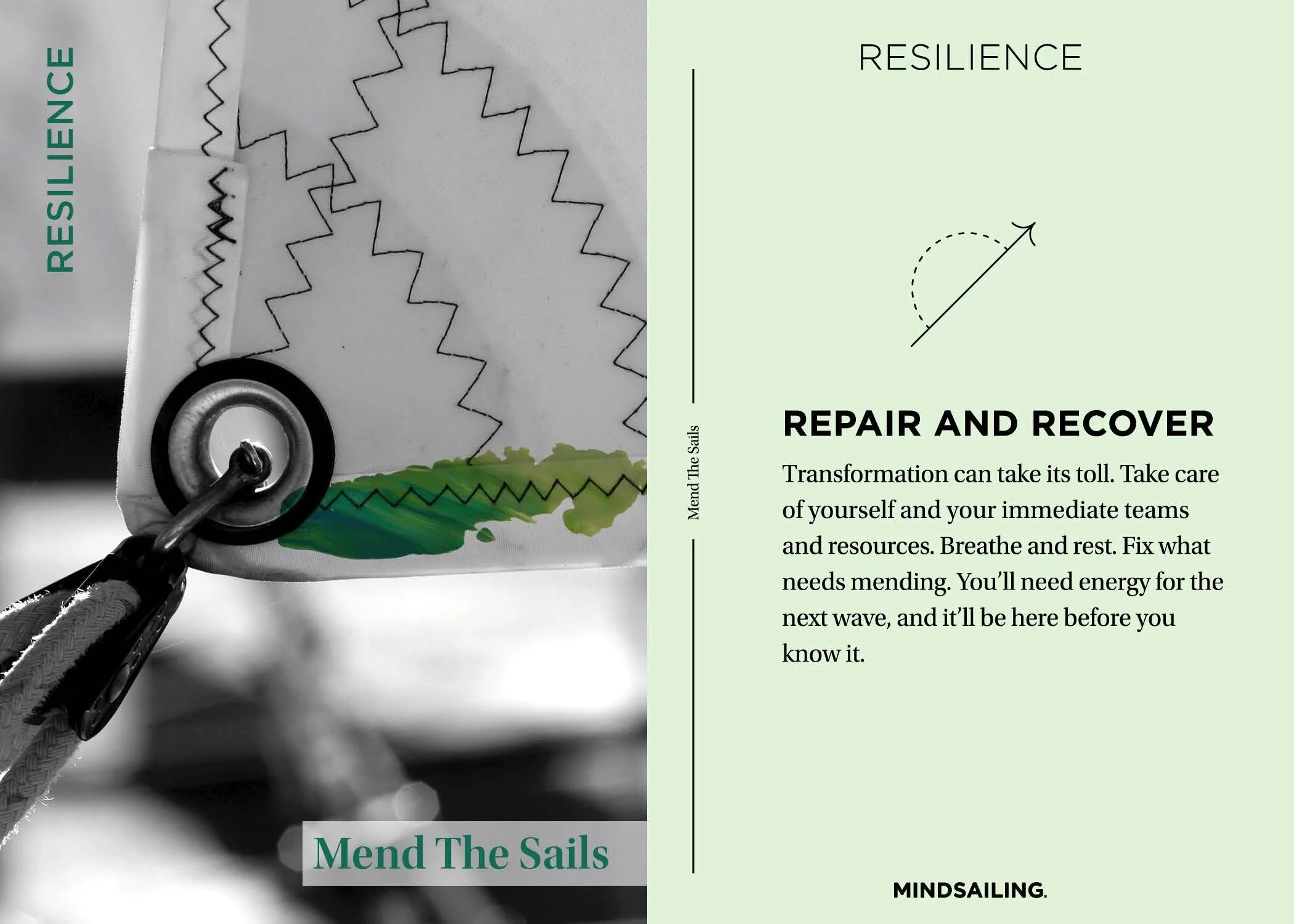 Mend the Sails is an exercise to help teams maintain stamina and optimism in the face of disruption. Each card features a description of the exercise and simple ideas for teams to implement with their organization.
